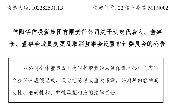 【大河财立方消息】 11月24日消息,信阳华信投资集团近日发布公告称,公司法定代表人、董事长、董事会成员变更,并取消监事会设置审计委员会。