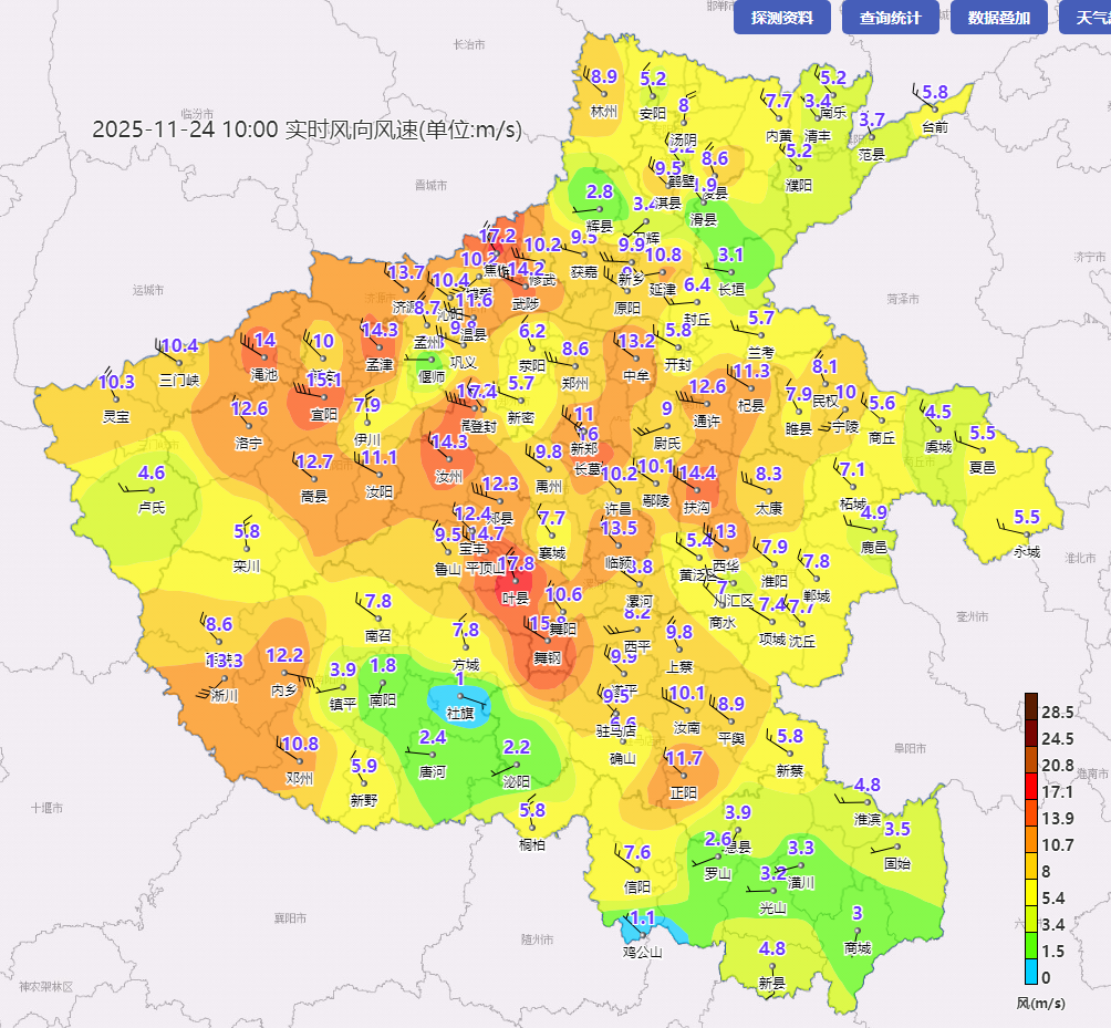 截至11月24日12时30分,河南共109个生效中,其中,多地发布大风黄色预警