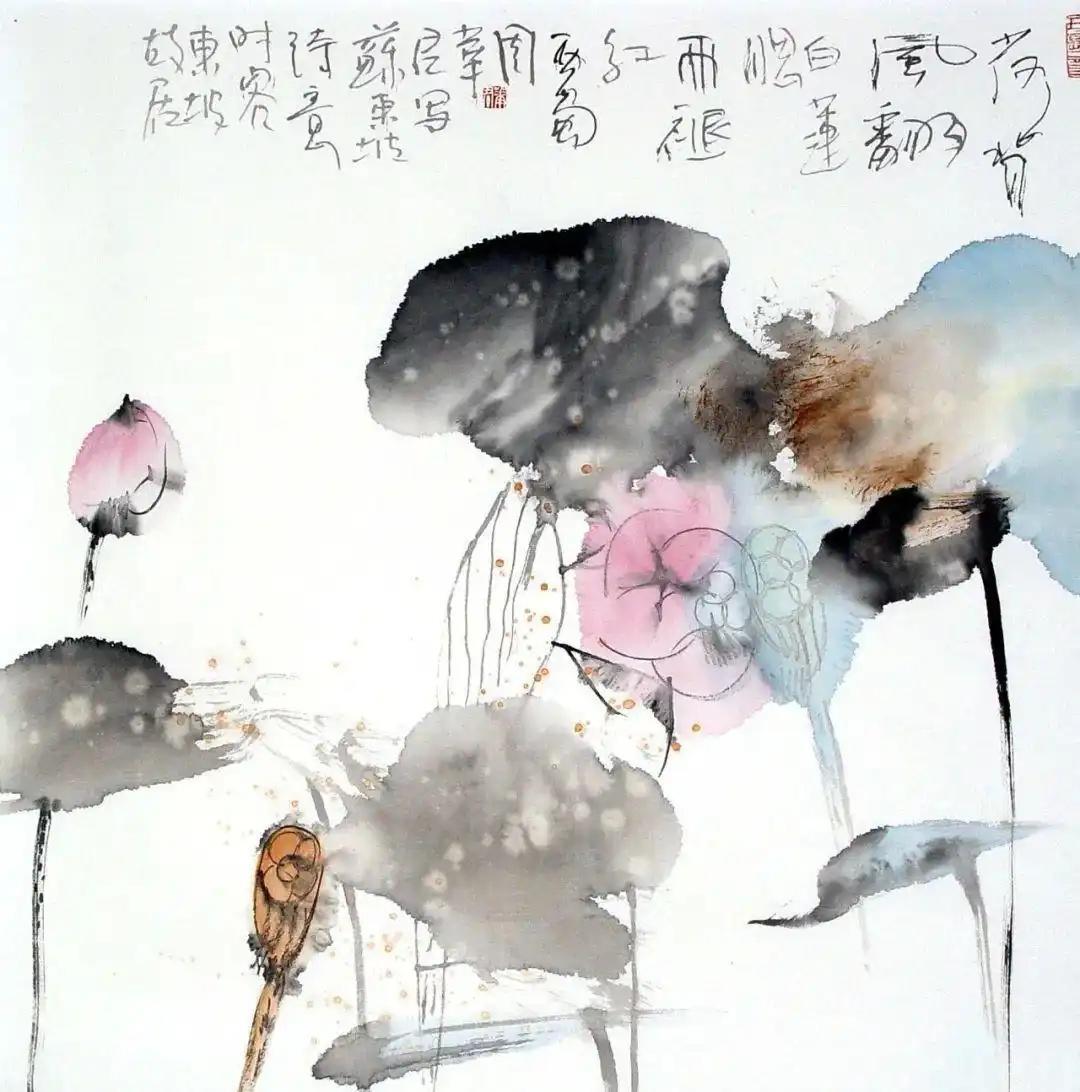 周华君多思善悟,笔端的山水、人物、花 、鸟兽无不生气流行,飘逸“俊发”之气息扑面而来,尤其擅长画荷,其落笔写荷,秀逸潇洒,散发迷人之清香。