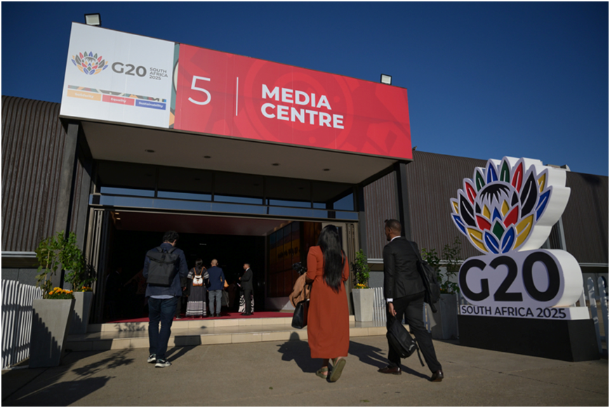 11月22日,在南非约翰内斯堡,新闻工作者进入二十国集团领导人第二十次峰会媒体中心 图:新华社