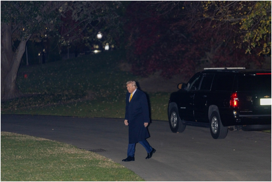 11月14日,在美国首都华盛顿白宫,美国总统特朗普在南草坪准备登机 图:新华社