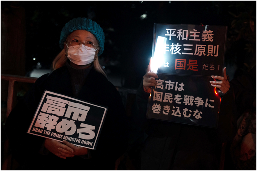 11月21日,在日本东京的首相官邸外,民众参加抗议活动 图:新华社