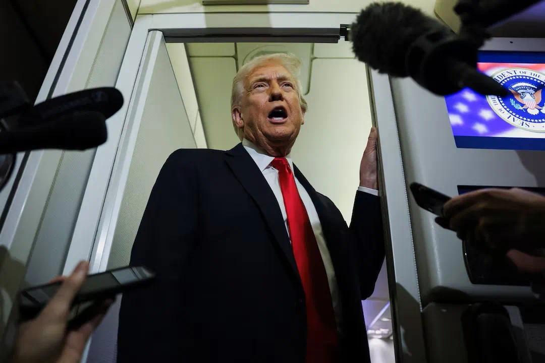 ▎2025年11月25日,美国总统特朗普在空军一号上向记者表示放弃要求乌克兰支持美国和平计划的最后期限(图源:路透社)