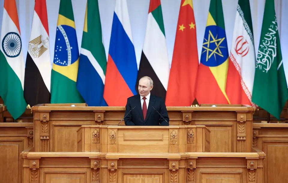 ▎2024年7月11日,俄罗斯总统普京在俄罗斯圣彼得堡举行的金砖国家议会论坛上发表讲话。(图源:路透社)