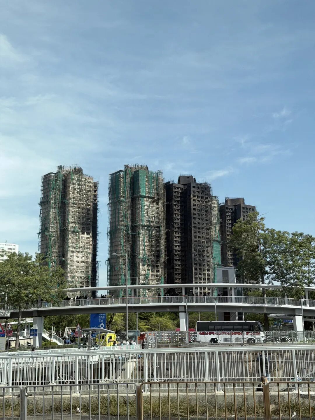 火灾的事发地宏福苑建于1983年,是一座拥有8栋楼、近两千单位、31层的老居屋社区。近来面临大修,外墙堆满棚架和围网。一旦起火,干燥的风将火屑吹开,火舌就会瞬间开始沿围网向上层和邻近大楼燃烧。