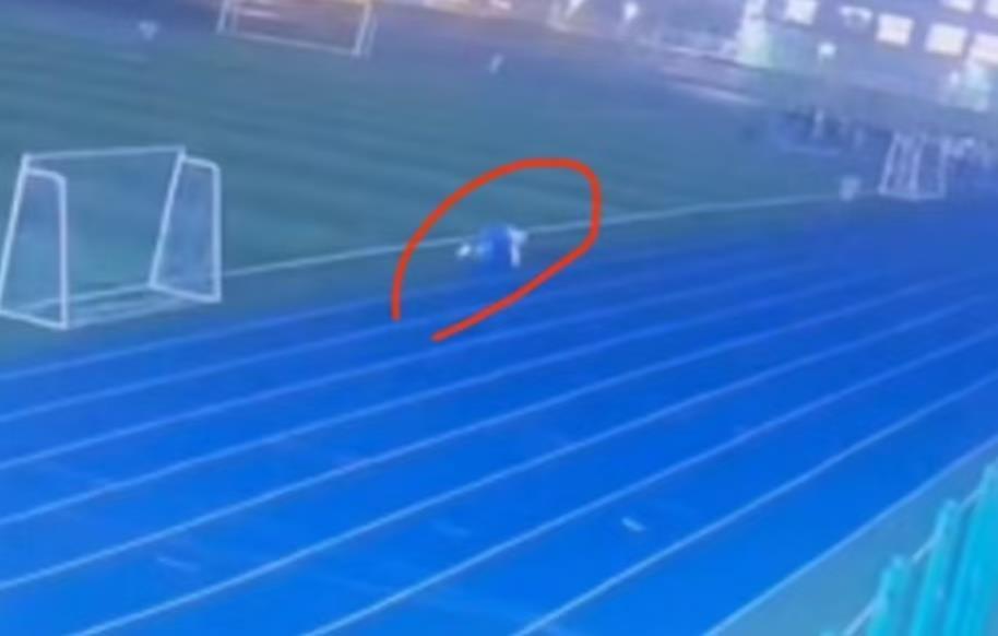 岳先生在派出所观看了监控视频。据家属翻拍的一段7分28秒的视频显示,几名着校服的学生在操场上跑步,35秒左右,一名学生(岳红)停止跑步,开始走路,41秒时,他突然双手撑地,此时一名学生从他身边跑过,1分7秒左右,岳红倒在了地上,此时又有一名学生从他身边跑过,直至7分29秒的视频结束,无人将岳红扶起。