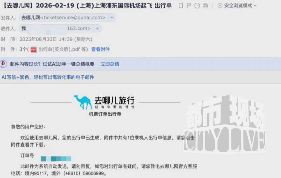 游女士告诉都市现场记者,今年8月29日,她以3433元的价格在去哪儿网购买了上海往返新西兰基督城的机票,第二天她收到了行程单和票号,确认已出票。