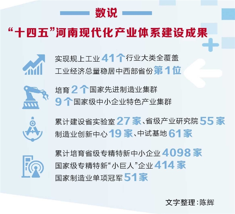未来,我们围绕国家“十五五”规划目标,推动先进农机装备、高端轴承、航空装备等规模较大、链条较完整的传统优势产业,积极向风口关联、向价值链高端升级,提升产业竞争力;推动新能源电池、机器人等关联新赛道、有优势、成长性好的新兴产业,加快延链补链强链,实现链式聚集发展;推动人工智能、氢能与新型储能等有特色、增长潜力大的未来产业,做强产业链关键环,开拓本地应用场景,融入先进地区产业链,推动装备制造业实现高质量发展,努力构建以先进制造业为骨干的现代化产业体系。(河南日报记者 陈辉 范坤鹏 整理)