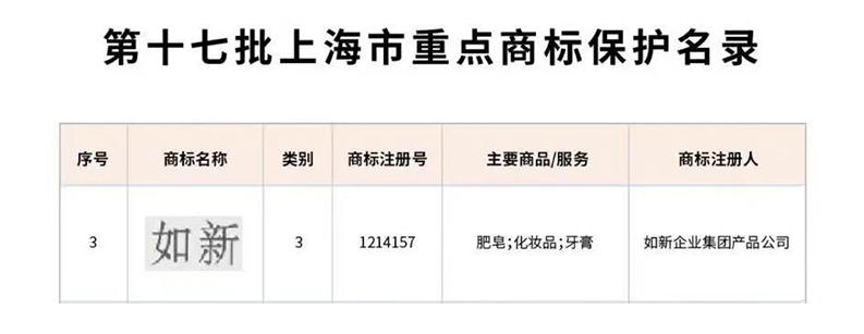 喜讯!如新集团核心商标凭借不凡的品牌影响力、强大的市场认可度及持续的创新实力,成功入选上海市重点商标保护名录!这不仅是一份依托于奉贤区美妆产业沃土所获得的荣誉,更是一份来自权威部门的崇高认可,以及如新品牌价值与市场地位的璀璨印证!