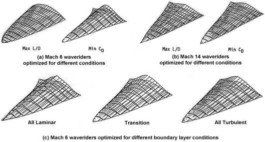 “驭空戟-1000”采用乘波体,但是挺特别的气动构型。大多数乘波体都是某种箭簇形:平面形状大体为三角形,相对扁平,上部有浅隆起,可能底部平坦或者上凹。