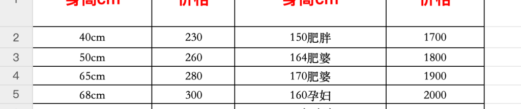 后来,陈娇发来一些关于产品的报价表、娃娃体型表和头型表。记者在表内看到,产品价格在230元到3700元不等,且标注所有身体搭配PVC、硅胶、树脂头。令人诧异的是,身高为160cm的“孕妇娃娃”也出现在报价表中供选择。此外,恒温加热、夹吸等功能供选配,价格在50元到850元不等。
