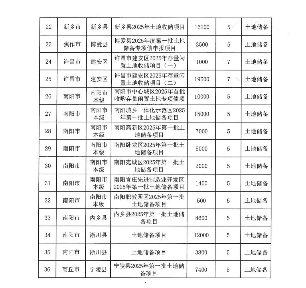 2025年河南省土地储备专项债券(一期)——2025年河南省政府专项债券(一百一十六期)和2025年河南省土地储备专项债券(二期)——2025年河南省政府专项债券(一百十七期),专项债券资金用于土地储备项目,具体如下: