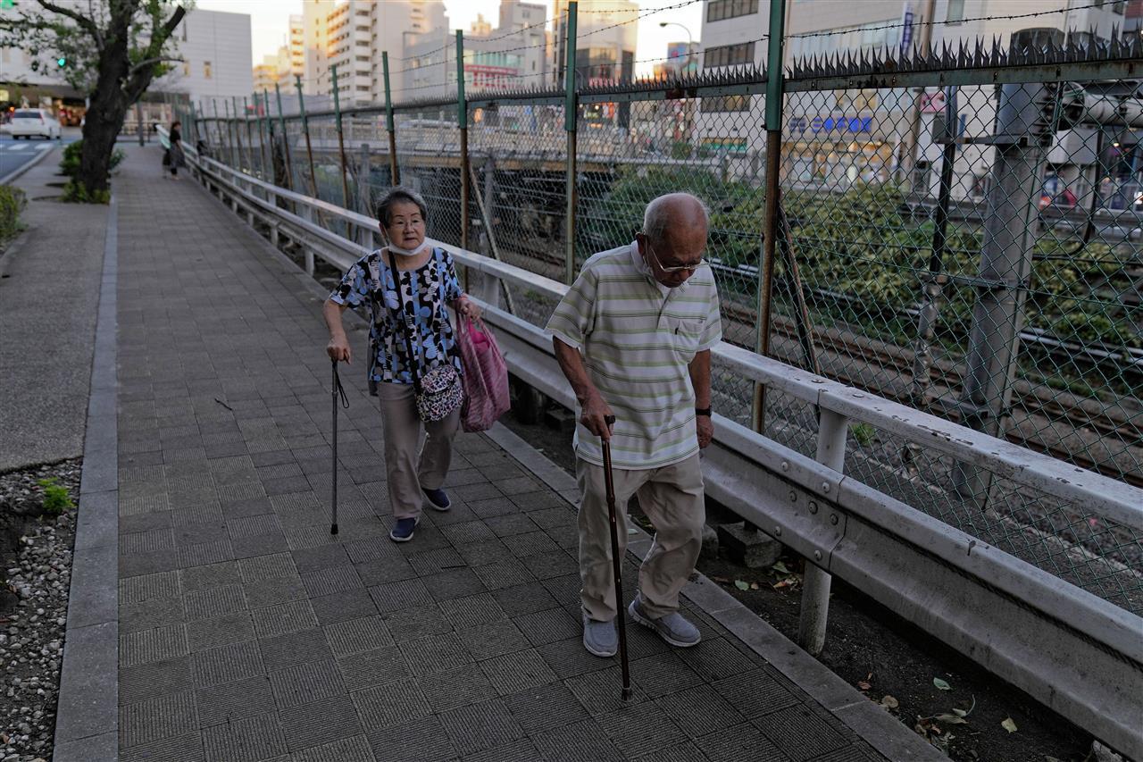 两位老人在日本东京巢鸭附近散步 资料图(图源:新华社)