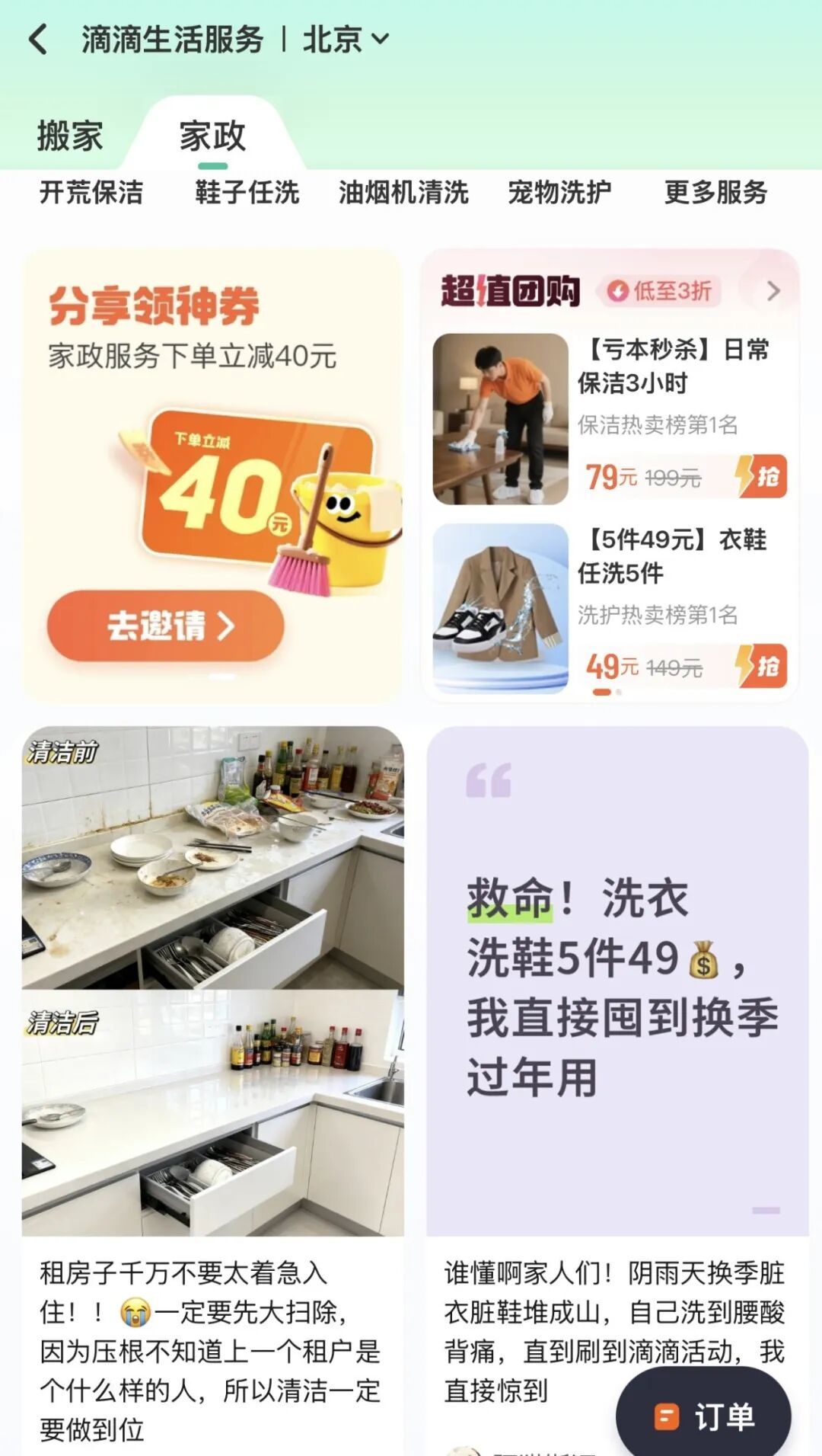切入这一领域,源于滴滴在搬家业务中获取的用户反馈,即搬家后会同步产生保洁等延伸需求。因而,家政被视作对滴滴既有生活服务板块(搬家、快送等)的自然补充。