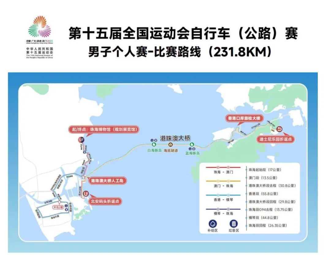 ▎2025年第十五届全运会自行车赛事,选手需要通过港珠澳大桥穿越香港、珠海、澳门三地。图源:南方日报