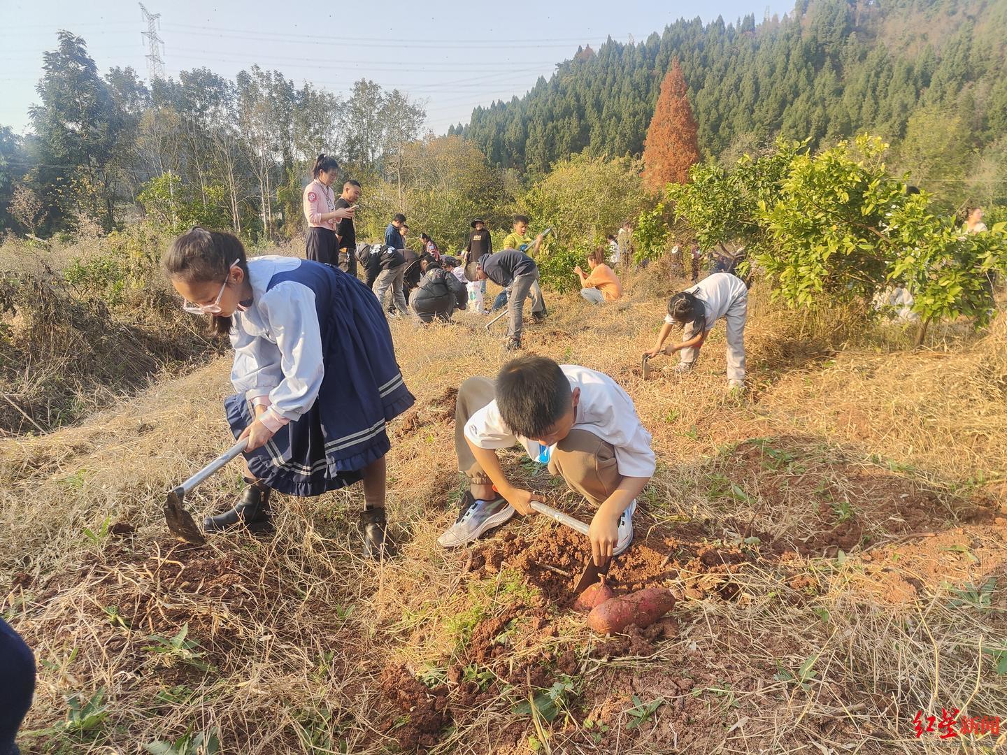 比赛15分钟一组。时值冬日,参赛者们却都累得汗水直流。从简阳市区专门开车带孩子来体验挖红苕的宋先生告诉记者,他在网上看到这项活动之后,想着孩子从小在城里长大,这是一个很不错的体验活动,能够让孩子直观了解农作物的耕作过程。