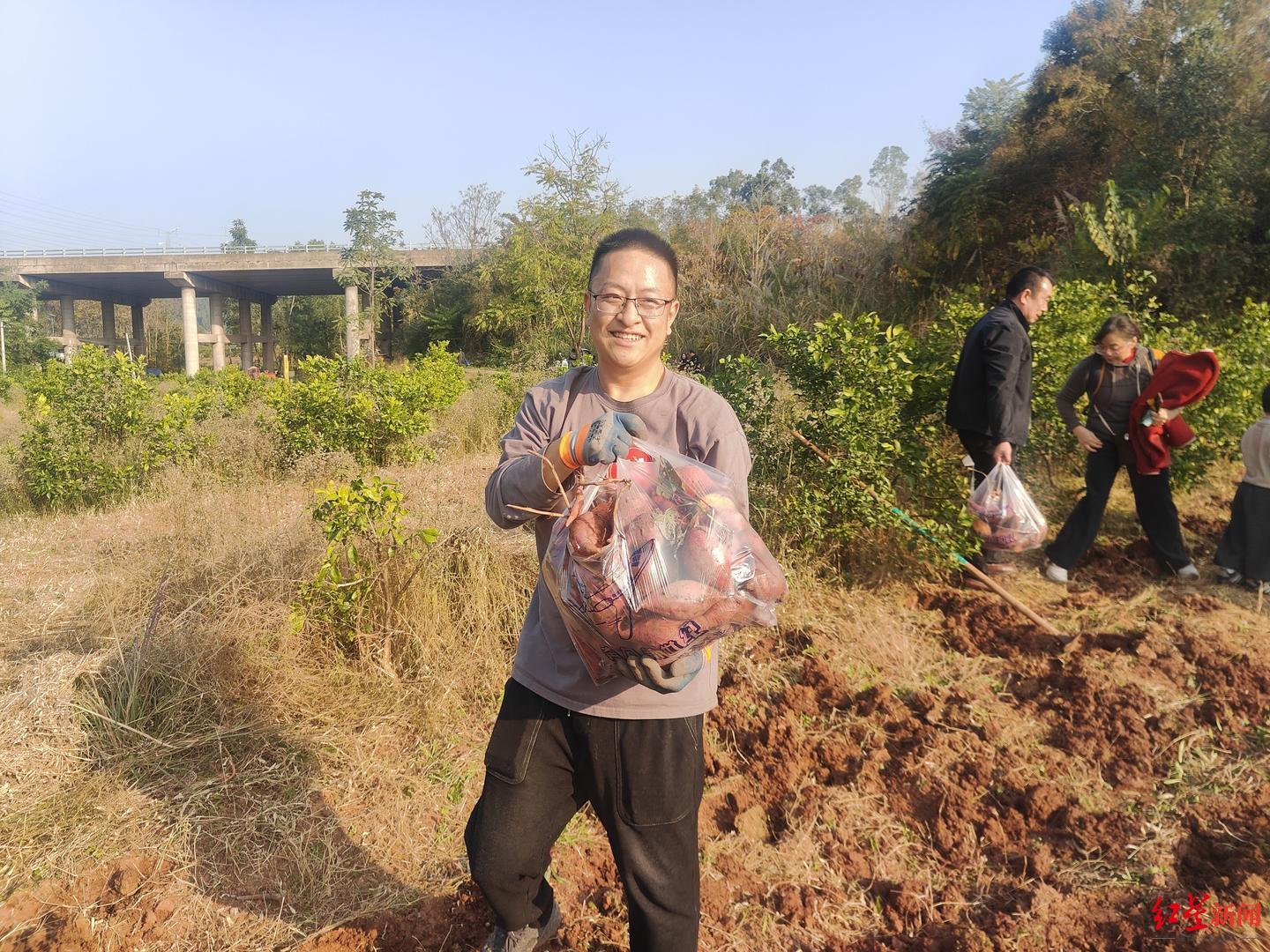 据了解,这是今年金星村首次举办这类活动,活动报名费每人9.9元,在15分钟的比赛时间内,挖到的红苕都能带走。在7日的比赛中,大多数参与者都能挖到10到20斤红苕,少部分甚至能挖到超过50斤。“从报名开始孩子就一直在期待,终于等到了,过程很累,但很值得!”宋先生提着自己挖出的红苕对记者说。