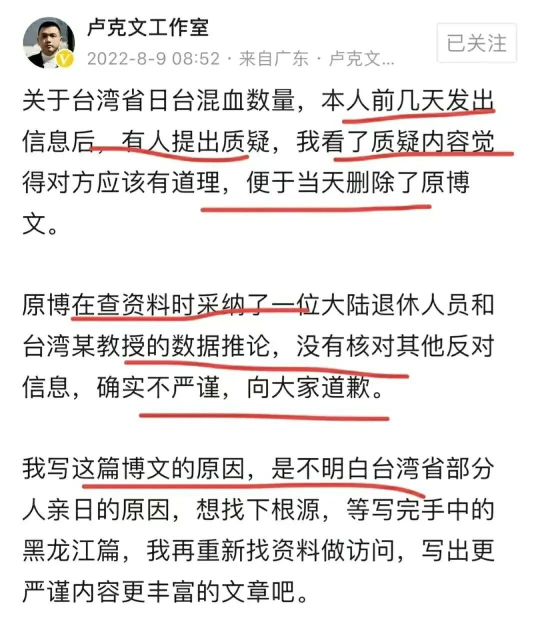 就连事后的道歉声明也堪称模板:先是说自己“没有表述清楚”,然后指责是“恨国党”在抹黑。