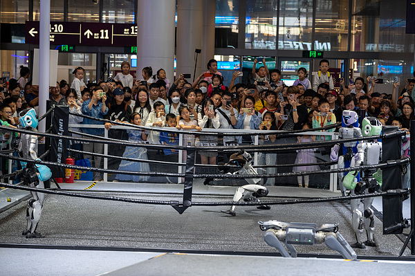 11月15日,广东深圳,第二十七届高交会上的宇树机器人拳击赛 视觉中国