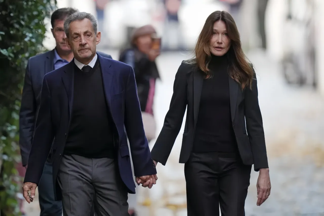 ·萨科齐在妻子的陪伴下走进监狱。(美联社)