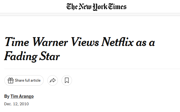 2010年,华纳兄弟历经多次并购重组前,时任时代华纳CEO的杰弗里·比克斯嘲讽奈飞是“阿尔巴尼亚军队”(小地方来的杂牌军,杀伤力如同“乡毋宁”),“阿尔巴尼亚军队会接管世界吗?我不这么认为。”