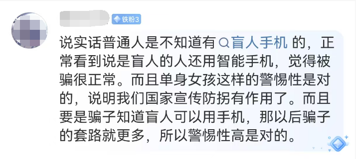 这起事件折射出当下社会复杂的心态:一方面,女性安全意识的提升值得肯定,警惕陌生人尤其是可疑求助行为是必要的自我保护;另一方面,对视障人士等弱势群体的生活缺乏了解,也可能导致过度猜疑,给无辜者带来伤害。