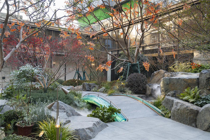 不再是“只能看”的景观,而是可走进、可沉浸的立体园林。近7米叠瀑+绿阶步道,让自然从“看的风景”变成“沉浸的生活场景”。