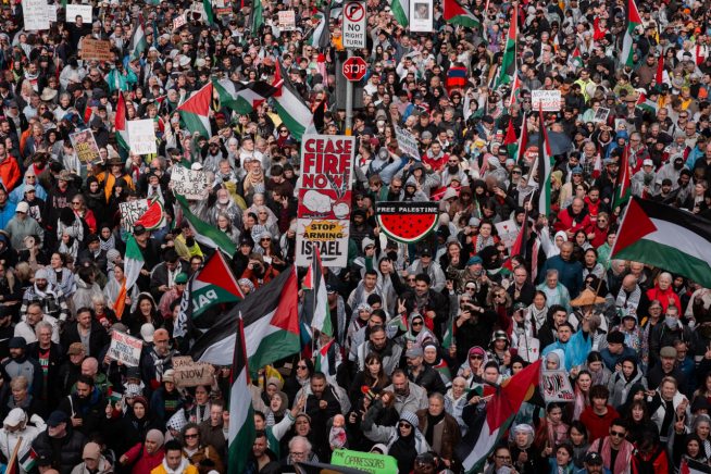 ▎2025年8月3日,至少10万支持巴勒斯坦的游行队伍浩浩荡荡地穿过悉尼海港大桥。(图源:卫报)