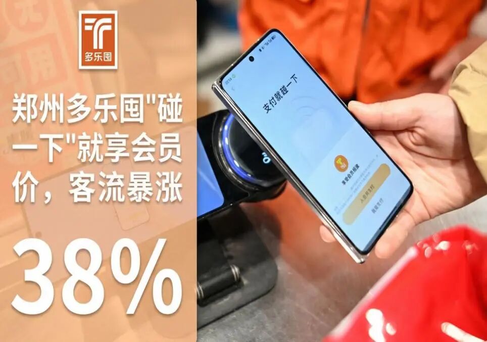 近日,在郑州市金水区新开业不久的一家多乐囤门店内,这种便捷的入会方式正吸引着越来越多的顾客。多乐囤自8月接入支付宝“碰一下”会员功能以来,截至目前,该门店已新增15万会员。
