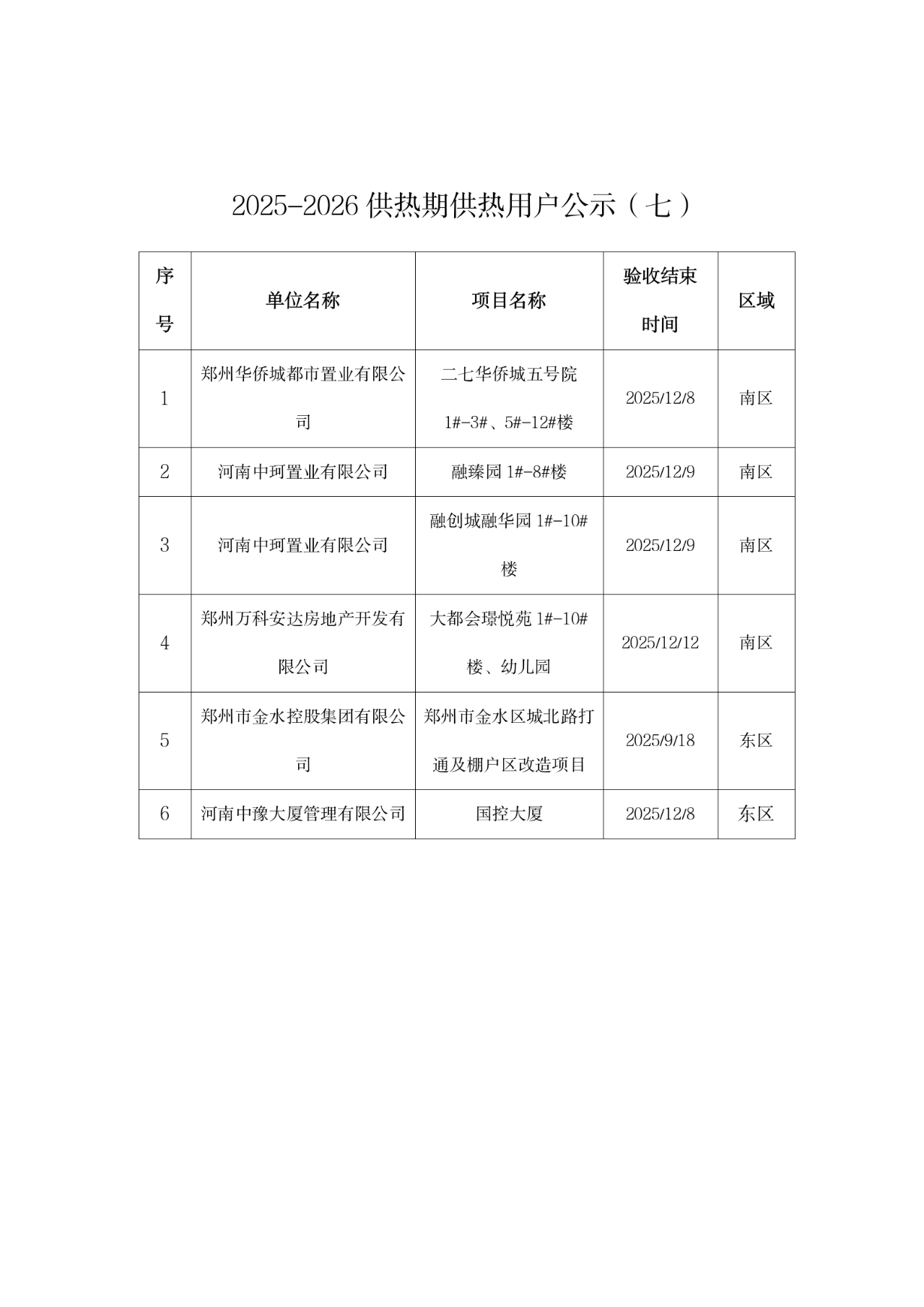 12月2日,大河报·豫视频记者从郑州热力公众号上了解,热力公司根据项目所在区域热源调度情况,确定第七批用户的用热项目6个,报装用热建筑面积:59.01万平方米,名单如下: