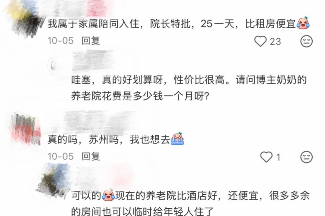 同样陪奶奶住养老院的@天气晴,也提到后续如果养老院生意好了,自己是需要退房的,不然耽误养老院做生意,她也会觉得不好意思。