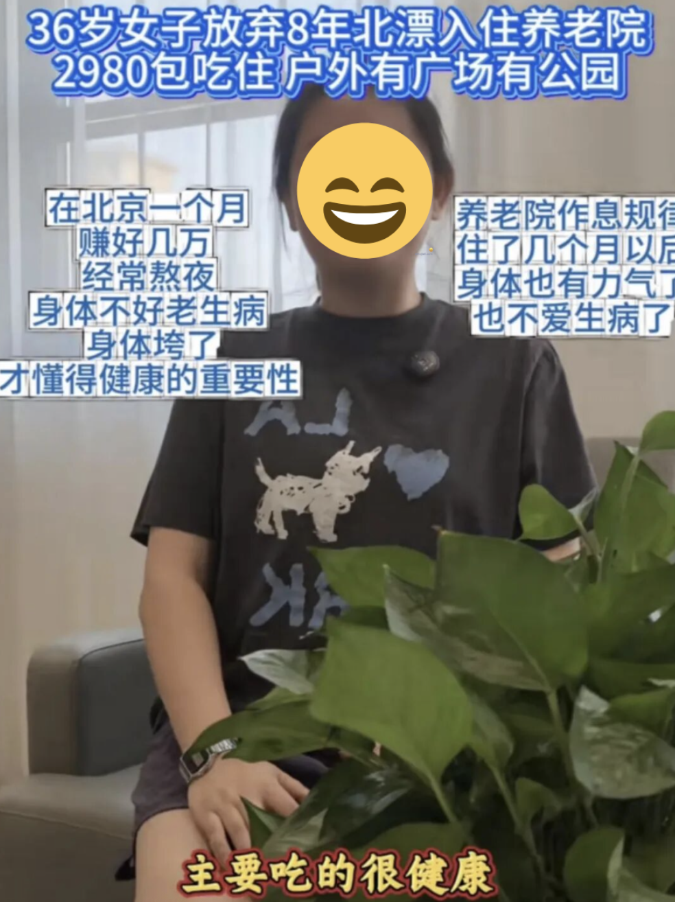 有人是因为熬夜身体垮了,所以宁愿放弃在大城市高薪的机会,暂时住进老家的养老院,找回健康,想清楚生命中什么更重要;