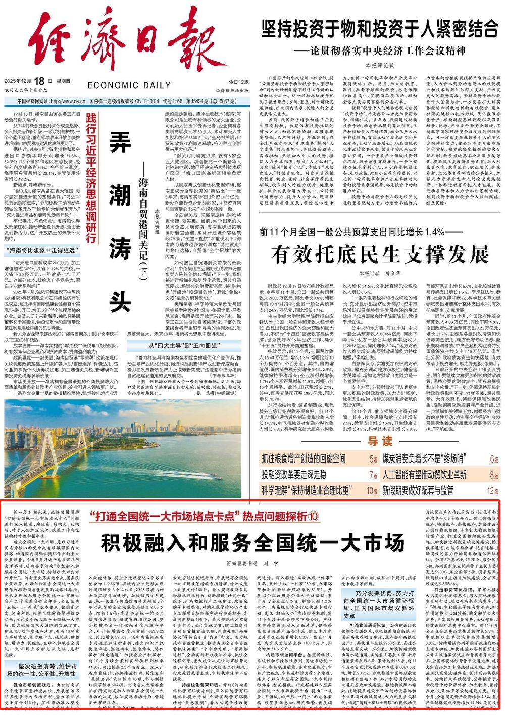 近一段时期以来,经济日报围绕“打通全国统一大市场堵点卡点”问题进行深入报道,站位高,影响大,反响好,对于人们加深认识、改进工作有很强的针对性和指导性。