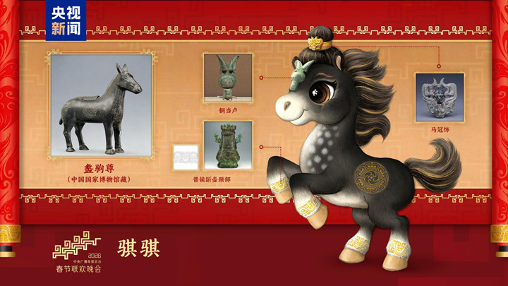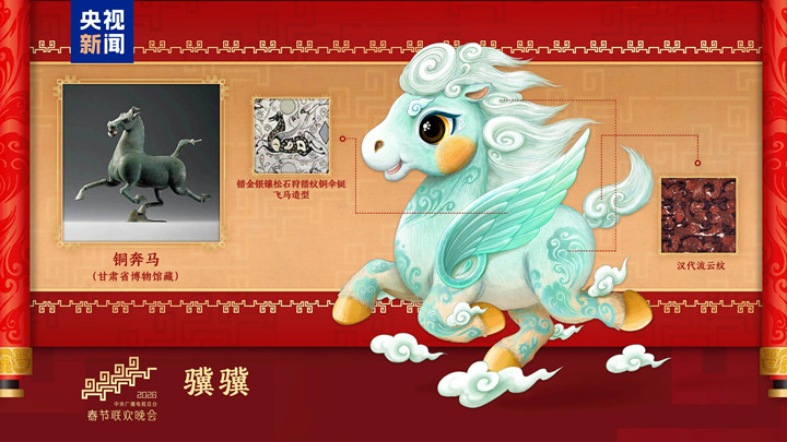 四匹骏马齐亮相,骐骥驰骋踏新程!12月18日,中央广播电视总台《2026年春节联欢晚会》发布吉祥物形象。“骐骐”“骥骥”“驰驰”“骋骋”四匹骏马,活泼可爱、意气风发,与晚会主题“骐骥驰骋 势不可挡”一脉相承、相得益彰。吉祥物的设计灵感来源于中国不同时期马的经典形象,并将流云纹、山云纹等千年纹样“穿”上身,充盈着生生不息的历史美感和万象更新的时代气象,饱含马到成功、前程似锦的美好寓意。