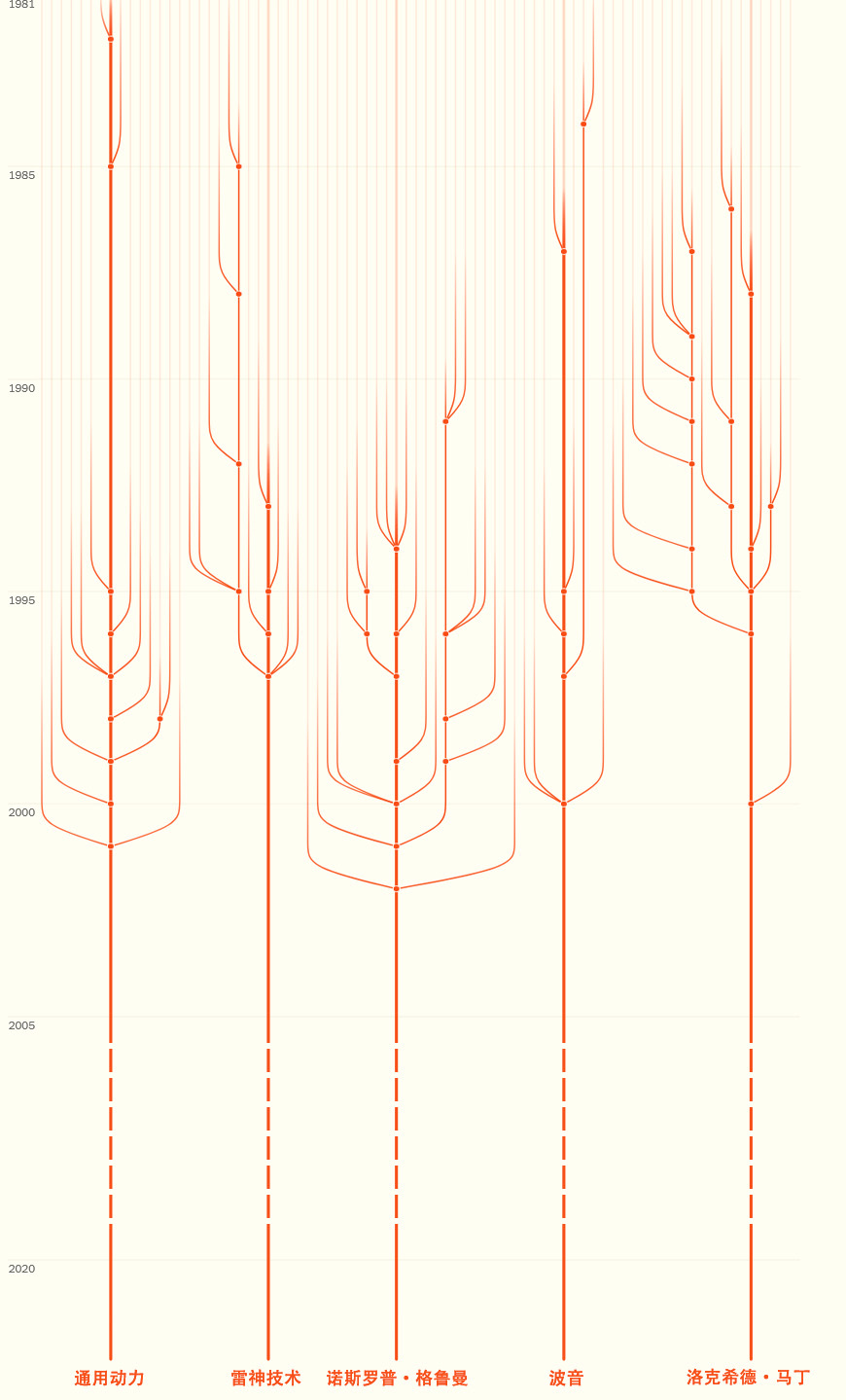 1981年时有77家主要防务承包商,1992年时有59家,再过10年,仅剩五家 观察者网改制自《纽约时报》