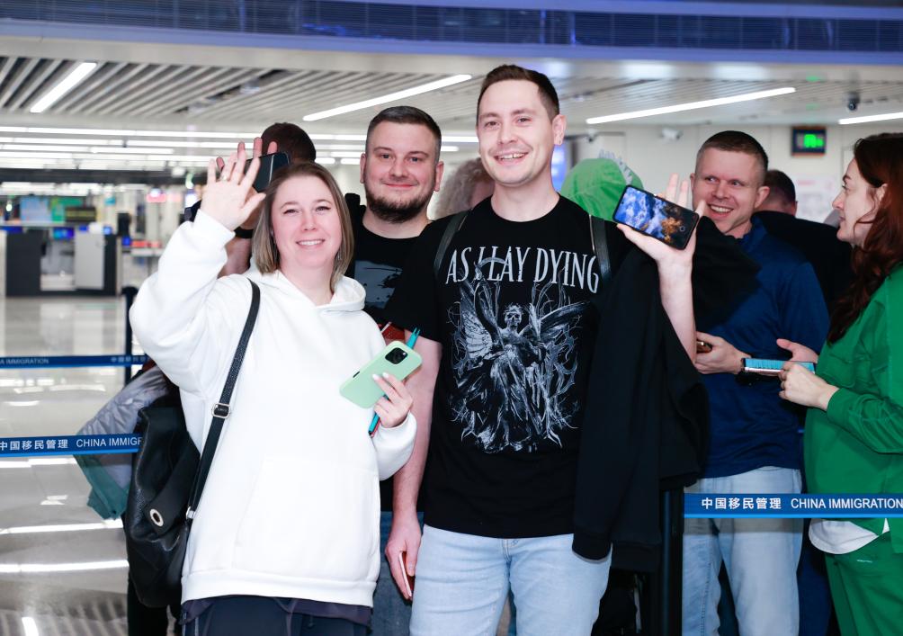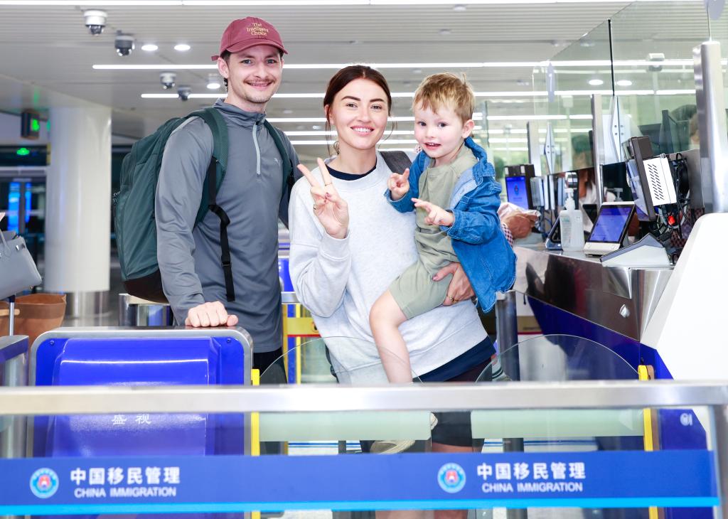 12月18日,在海口美兰边检站,入境旅客在排队等候边检查验期间留影。新华社发(孙浩戎 摄)