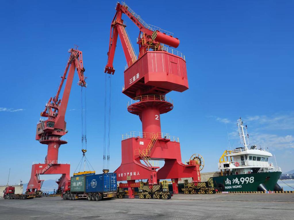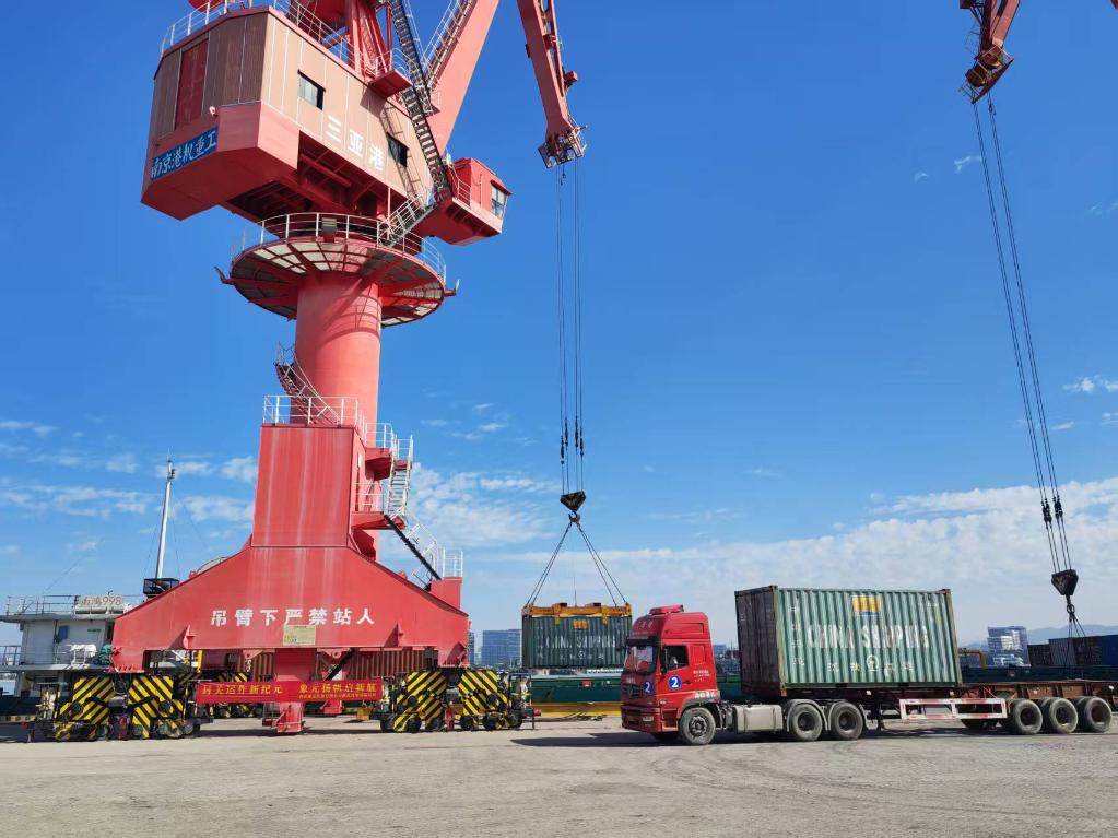 12月18日,三亚港“二线口岸”南山港区海关查验场,第一批出岛货物顺利通关。新华社记者 刘博 摄