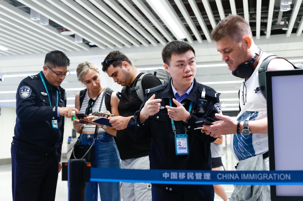 12月18日,海口美兰边检站民辅警为入境旅客服务。新华社发 (孙浩戎 摄)