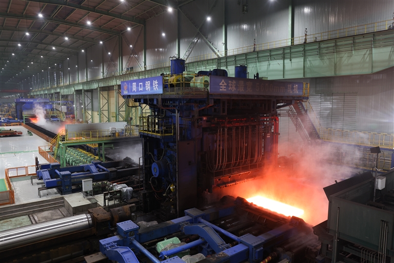 如今,周口基地已在高端化、智能化、绿色化转型中崭露头角:被誉为“世界轧机之王”的5600毫米轧机正高效运转,其宽厚板生产线具备年产40万吨船板能力,产品覆盖散货船、集装箱船及海洋平台等多种高端需求。