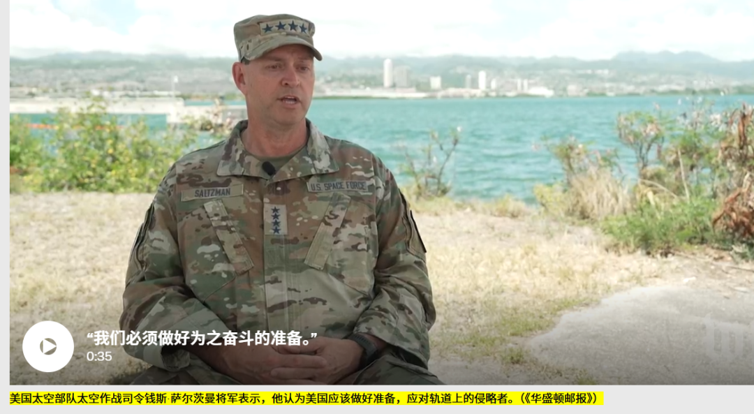 美国太空军总司令萨尔茨曼将军就直白的说:我认为美国应该做好准备,应对轨道上的“侵略者”