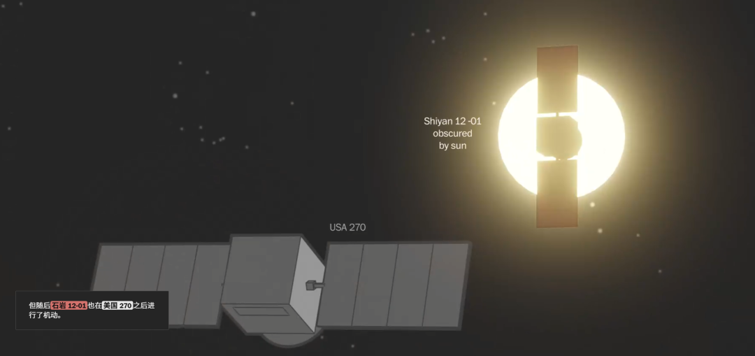 在这情况下美国间谍卫星就像瞎了一样非常被动,所以必须马上机动改变位置,要么加速超过去,要么减速让自身背靠太阳