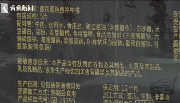 另外,调理牛排的添加剂和辅料中可能含有致敏原成分,如果被混淆为原切牛排售卖的话还可能引发安全事故。