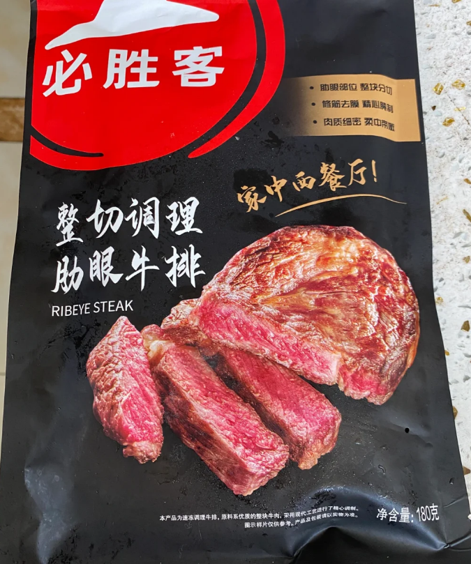 而那位必胜客店员提供的牛排包装上,标注的执行标准正是GB19295,也就是说必胜客用的是调理牛排。