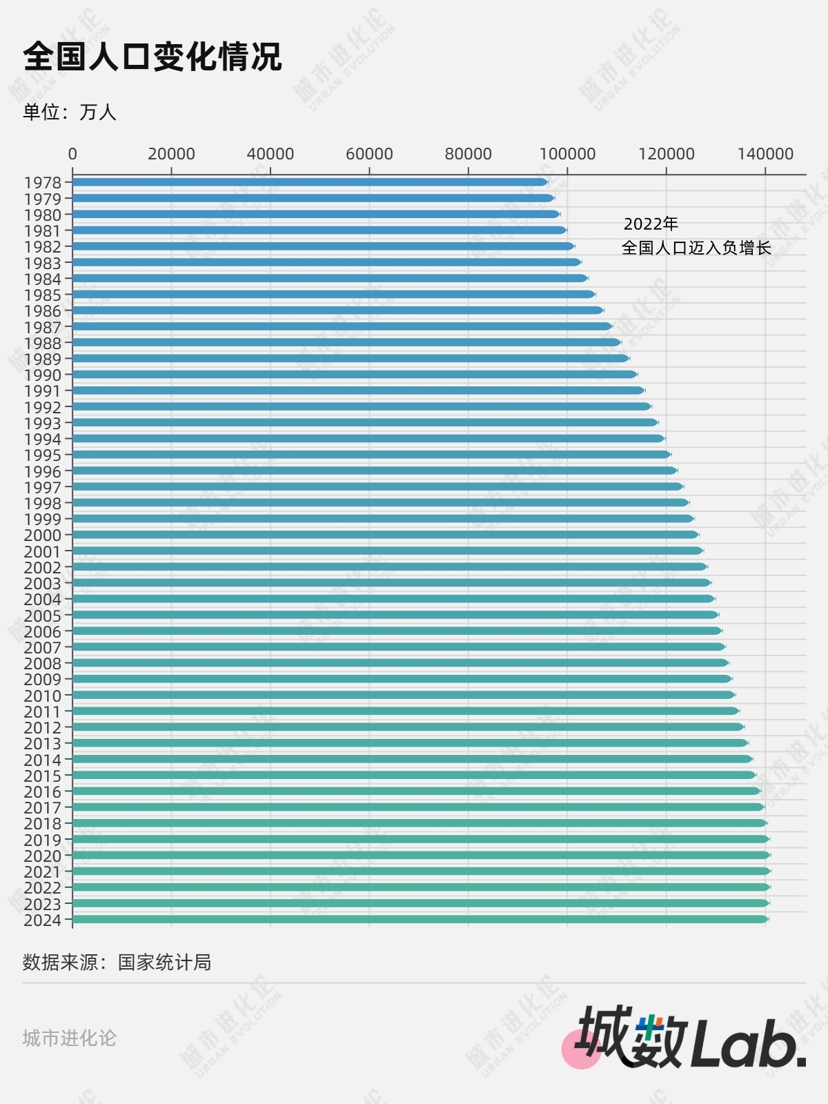 2022年,全国人口出现61年来首次负增长,此后两年连续负增长,三年累计减少432万人。