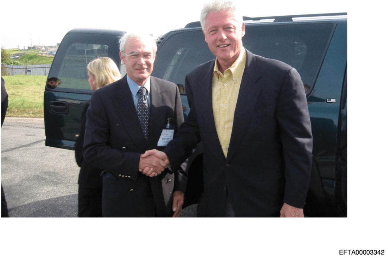 ▲美国司法部公布的这张未注明日期的照片显示,美国前总统比尔·克林顿(右)与一名男子握手 图据视觉中国