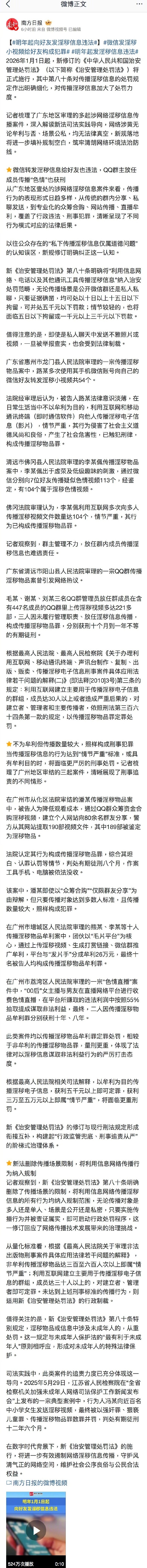 老胡查阅了新修订的《治安管理处罚法》第80条,也查阅了现行版的相关条目,都没有个人之间点对点发送涉性图像也包括其中的具体定义。从南方日报的报道看,它更多是司法实践中的问题,更像是层层加码的结果,对这样的加码应当坚决反对。