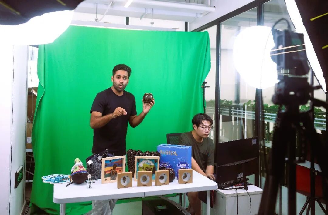 9月22日,在海口复兴城互联网信息产业园,一名来自巴基斯坦的主播在直播间进行直播带货/新华社记者 郑悦 摄