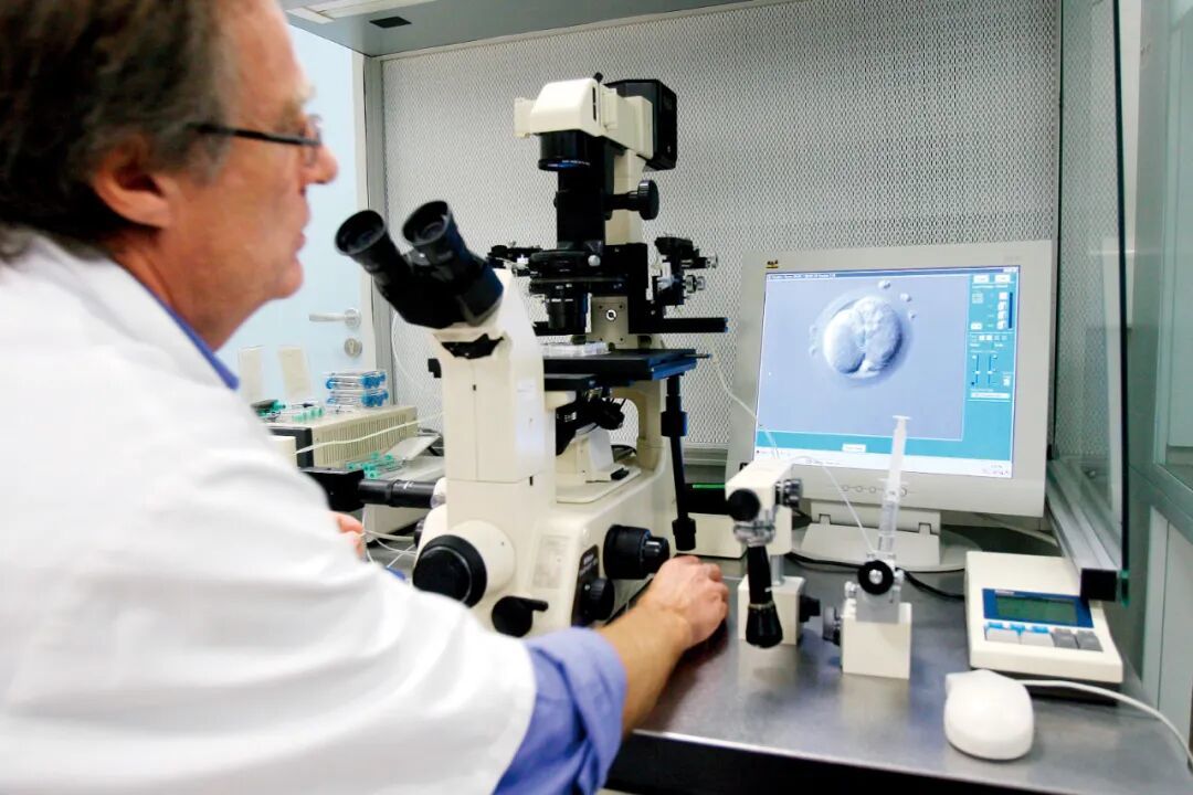 法国一家精子银行内,工作人员通过显微镜观察人类胚胎。图/视觉中国