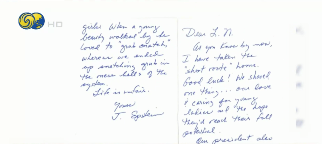 此次公开文件中最引发争议的内容之一,是一封爱泼斯坦在2019年狱中去世前写给纳萨尔的手写信。信件署名为“J. 爱泼斯坦”,文中称两人有一个共同点,就是喜爱年轻女性。信中还以“我们的总统”为指代,影射时任总统特朗普,称其同样偏好年轻貌美的女性,并以粗俗语言影射其对待女性的方式。信件末尾写道,“生活是不公平的”。就在该信发出的当月,爱泼斯坦在狱中身亡。