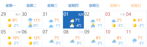 根据中国天气网预测,元旦假期全省天气以晴天到多云为主。有利于大家出行游玩,但受频繁冷空气活动影响,我省大部分地区气温较常年同期偏低,公众还需根据天气变化合理安排着装,做好防寒保暖工作,也需密切留意预报预警,外出注意防范雨雪天气带来的不利影响(天气预测仅供参考,最终以河南气象实际发布为准)。